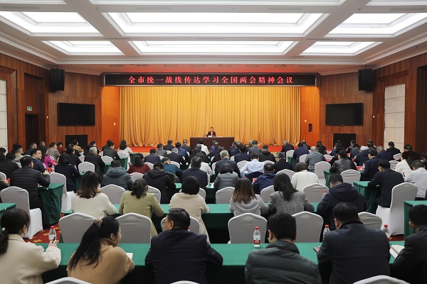 3月14日,全市统一战线传达学习全国两会精神会议召开,市委常委、统战部部长卢红主持会议并讲话。