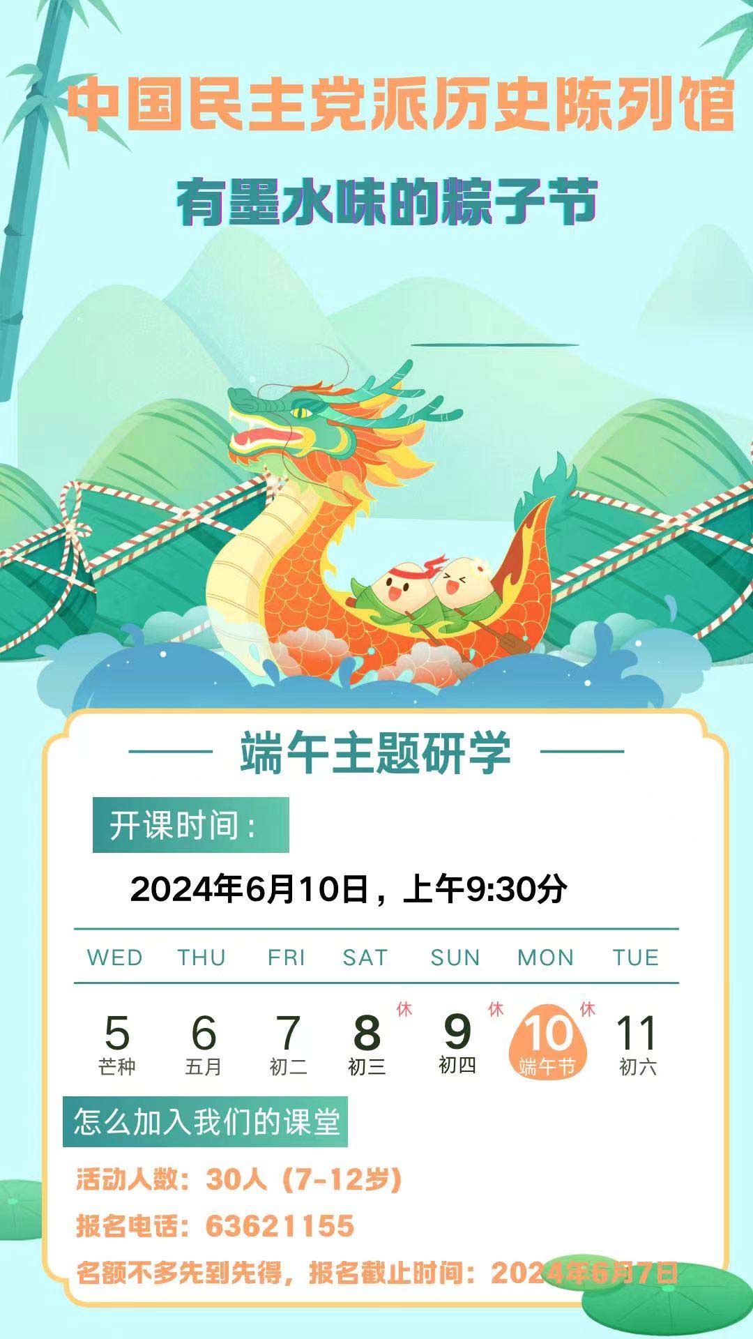 端午节是中国的传统节日,中国民主党派历史陈列馆专门为7-12岁青少年精心打造了精品公益端午研学课堂。
