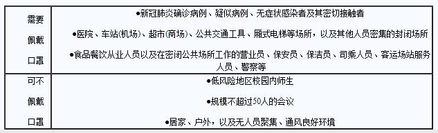 该《意见》由重庆市新型冠状病毒肺炎疫情防控工作领导小组发布。《意见》对不同场所是否佩戴口罩作出规定(见图表)。