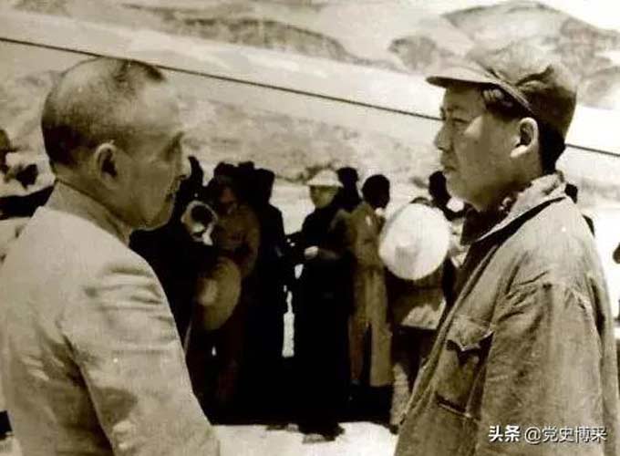 ◆1949年,毛泽东在香山双清别墅会见柳亚子。