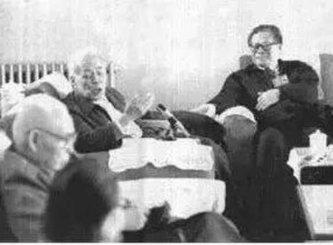 “周谷老,您是同毛主席等国家第一代领导人共事的,我非常敬仰您!”一见面,江泽民就握着周谷城的双手,真挚地说。“我在做学生的时候就读过您的书,现在真想再花一点时间复习一下历史,特别是世界史。”周谷城说:“我是个教书匠,吃了一辈子的粉笔灰,写的主要是历史书,得到了毛主席的鼓励。我也写政治史、形式逻辑与辩证法,也写教育论文、哲学论文,还搞点翻译。”说着,周谷城走进书房,说是有一本英文世界史教科书,图文并茂,但一时没找到。江泽民说:“不急,以后有时间我再来借。”他们就坐在书架旁拉开了家常。谈到扬州时,江泽民充满感情地说:“下次我专门陪你们去我的家乡,要到富春园吃点心。扬州的园林也是一绝,我多年没有回去了,很想回去看看,就是没有时间。”江泽民看见书架上有许多外文书,走近前去,一一念出书名,说大部分是哲学、历史书籍。周谷城很佩服:“您的英文俄文德文都很好啊!”江泽民很谦虚:“哪里,是工作逼出来的。”