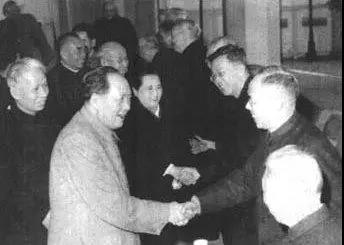 1962年3月,在二届全国人大三次会议上,毛泽东和周谷城握手。