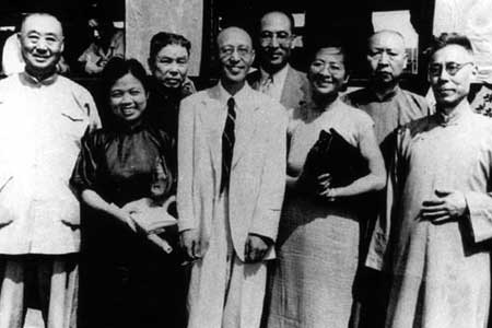 1946年6月23日,上海和平请愿团部分代表在上火车前合影,右起:马叙伦、包达三、雷洁琼、阎宝航、张絅华、盛丕华、胡子婴、蒉延芳。